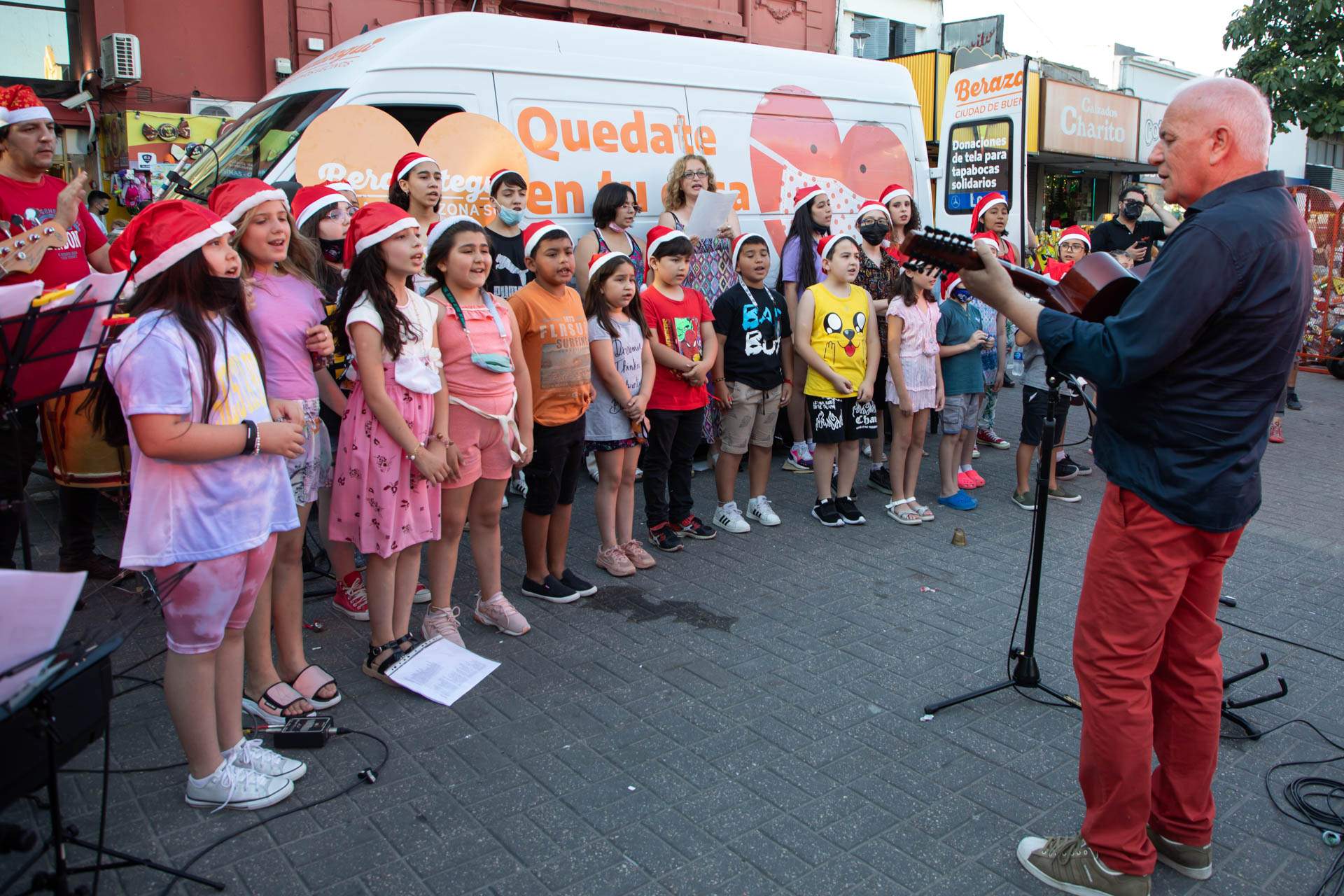 En lo que fue la última actividad cultural organizada por la Municipalidad de Berazategui en este 2021, el Coro de Niños y Niñas -dirigido por el maestro Edgardo Palotta- brindó su tradicional Concierto de Navidad, conformado casi en su totalidad por canciones propias; y el acompañamiento del grupo musical Los Escalofriantes. Ante un gran marco de público, el espectáculo se desarrolló al aire libre en la peatonal céntrica de la ciudad (Av. 14 e/147 y 148), con la presencia del intendente municipal, Juan José Mussi; y del secretario de Cultura y Educación, Federico López.