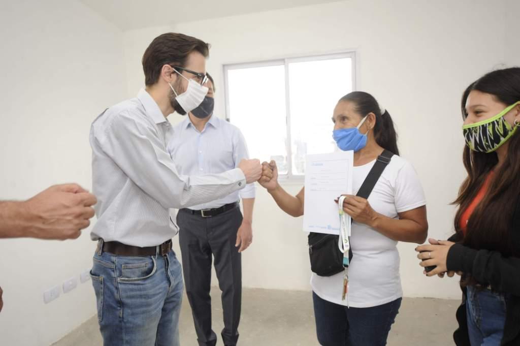 El intendente Andrés Watson junto al administrador general del Instituto de la Vivienda de la Provincia de Buenos...