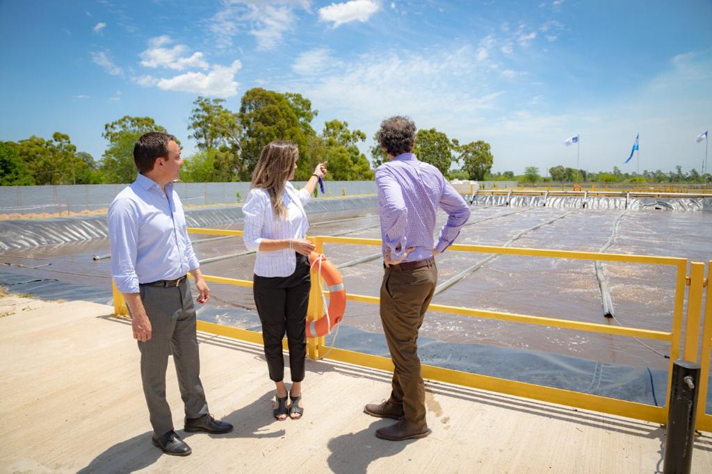 La presidenta de AySA, Malena Galmarini, el ministro de Obras Públicas, Gabriel Katopodis, y el intendente de Florencio Varela, Andrés Watson, participaron de un acto en el que se celebró la puesta en servicio de la Planta Depuradora Florencio Varela, que beneficiará a más de 10 mil vecinos y vecinas del complejo habitacional La Hormiga del barrio Santa Rosa, y permitirá la expansión del servicio de saneamiento cloacal en la zona sudeste del conurbano.