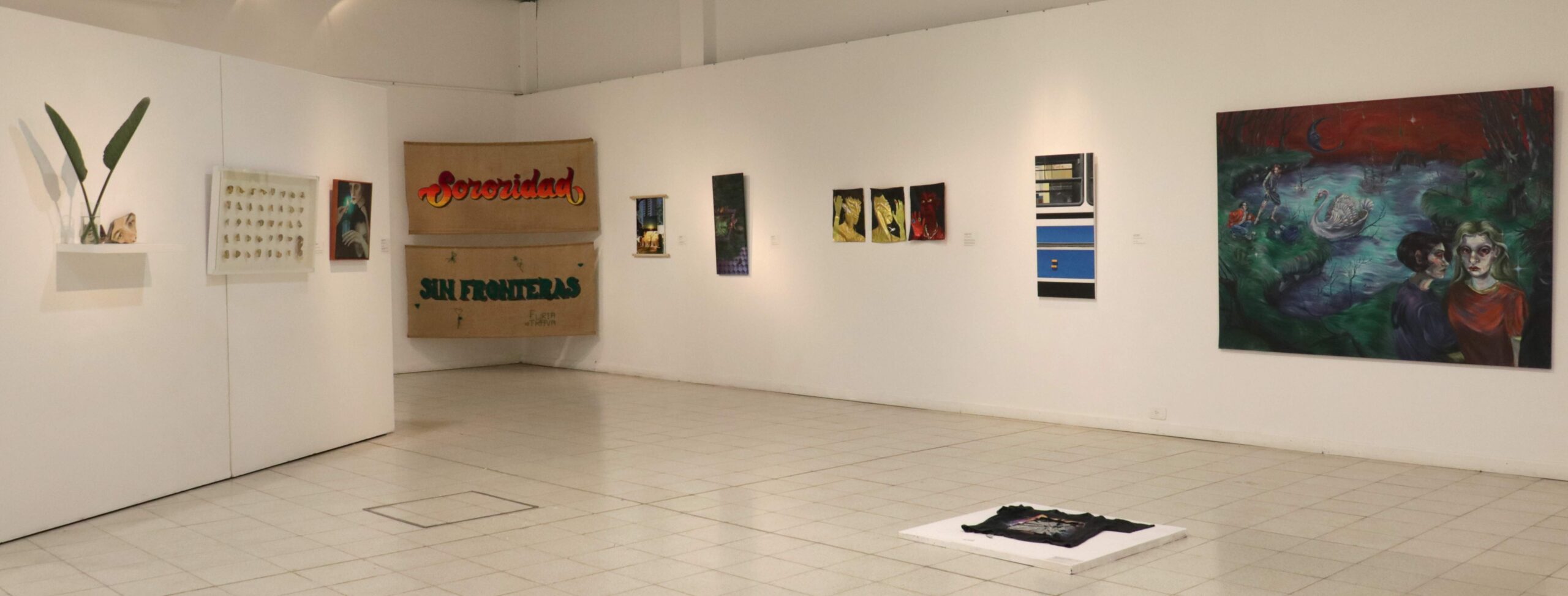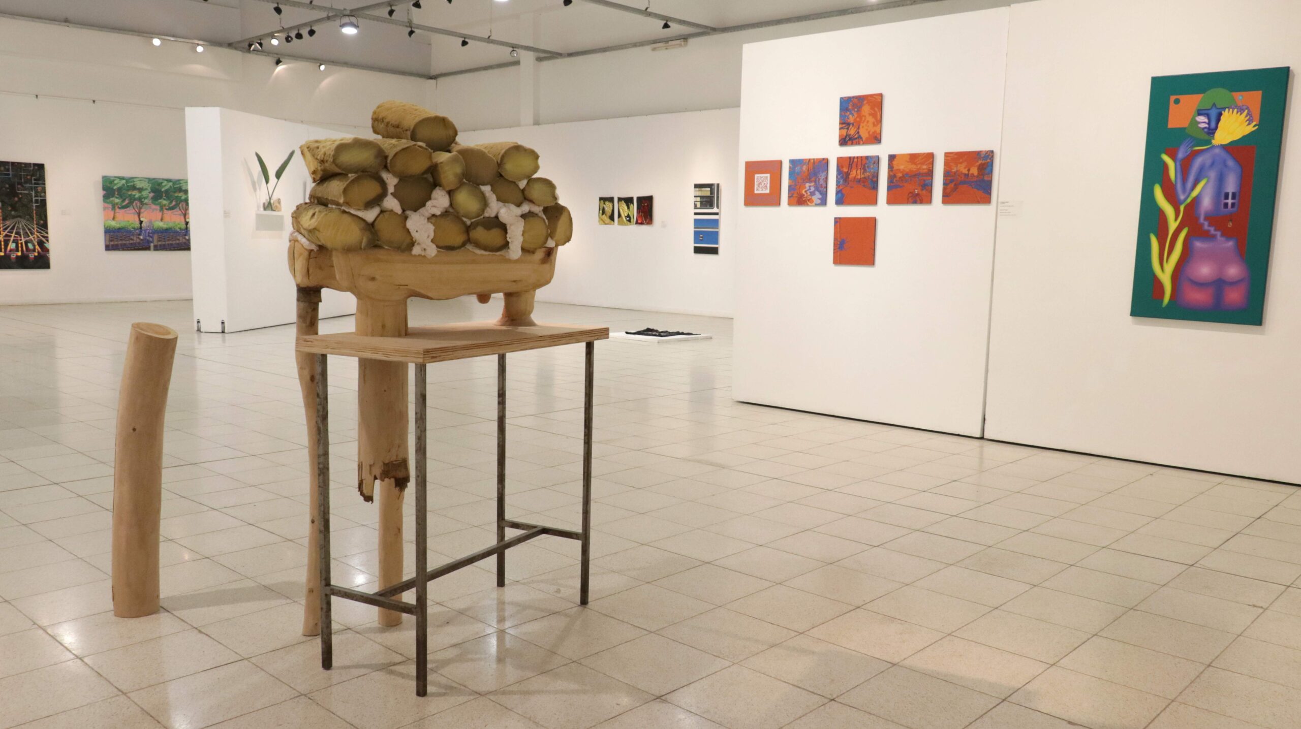 Dibujos, pinturas, esculturas y grabados dialogan en la sala con instalaciones, video-arte, textiles, fotografías y artes del fuego en un ecléctico tapiz donde resuenan formas de imaginar y desafiar el presente.