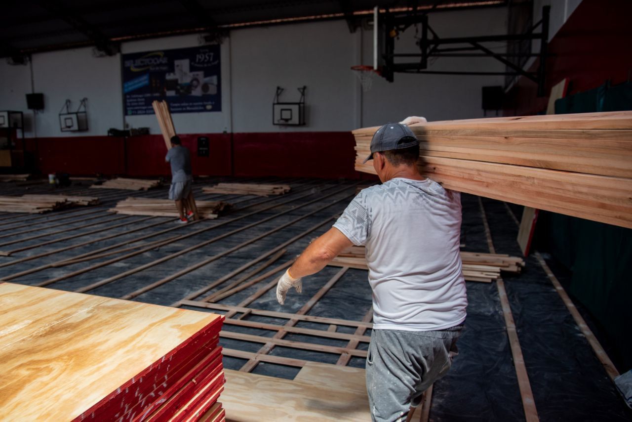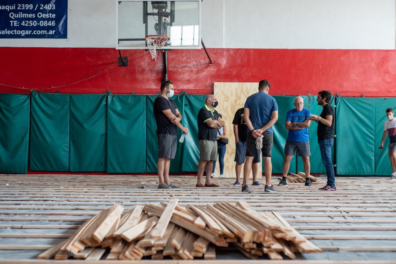 El Municipio de Quilmes continúa avanzando en la mejora de los clubes de barrio, a través del Programa de Fortalecimiento a Clubes de Barrio y Entidades de Bien Público. Esta vez, funcionarios municipales supervisaron los trabajos que se llevan adelante en el gimnasio del club Los Cooperarios, ubicado en Andrade 3056, donde se está renovando el piso de parquet.