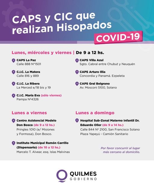 Estos son los lugares en Quilmes donde estamos realizando testeos de Covid-19. Acercate a tu punto más cercano y...