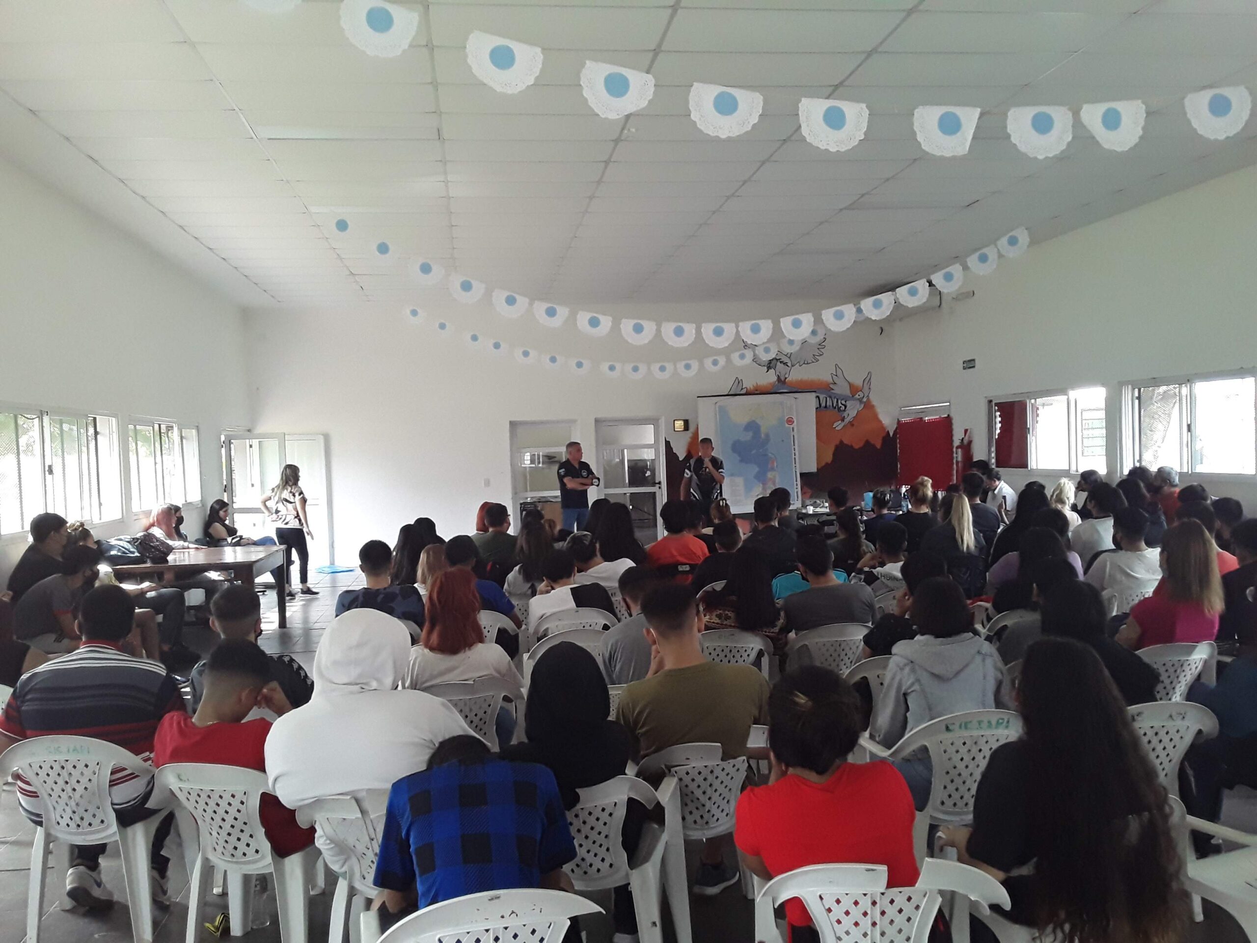 El evento se llevó adelante en salón “Héroes de Malvinas” del Centro Integral Comunitario (CIC) IAPI con la presencia del Director de la escuela Luis Dattilo, quien dio la bienvenida a los ex soldados destacando el valor que representa para la comunidad educativa mantener viva la memoria de aquellos compatriotas que participaron de la guerra, además de sostener el irrenunciable derecho argentino a la recuperación plena de la soberanía sobre Malvinas. Por su parte el VGM Pepe Valdez, que estuvo a cargo de la charla con los alumnos junto a Saltirana, destacó el ineludible compromiso que asumieron todos los soldados que regresaron al continente con aquellos héroes que cayeron en combate contra el invasor británico. Esto condujo a sustentar la causa Malvinas en toda Argentina, con la organización de centros de veteranos de guerra en cada localidad del país que se encargaron de sostener la bandera malvinera en cada acto, plaza, escuela o calle que recuerda la entrega de los que dieron todo por la Patria; haciendo frente a la feroz campaña de desmalvinización que sobrevino en la posguerra.